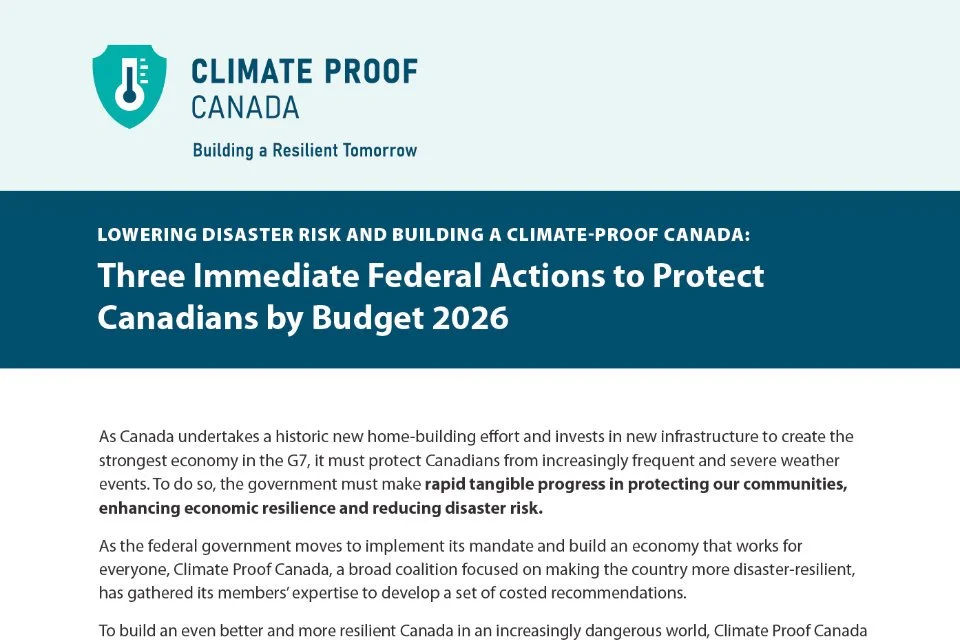 Lowering Disaster Risk and Building a Climate-Proof Canada: Three Immediate Federal Actions to Protect Canadians by Budget 2026